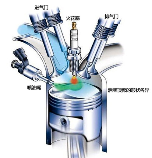 传统的发动机是将燃油喷入进气道,和空气充分混合后以可燃混合器的方式进入燃烧室内然后,然后在活塞压缩行程的末端通过火花塞点燃剧烈燃烧,在这个基础上发展起来了一系列进气歧管油电混合技术,虽然电子控制喷油量改善了早期化油器不适应各种工况的不足,不过它也有一定的劣势,首先就是受进气流的影响使得燃油和空气不能得到较好的混合,而且混合气体只能在气门开启的时候进入汽缸因此电脑控制能力还是有限,这一切都影响了燃油的燃烧效率。