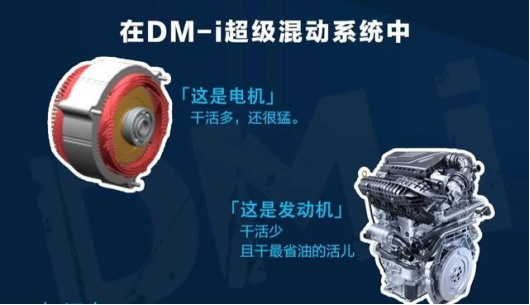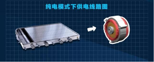 在纯电模式下,搭载DM-i超级混动系统的车辆将由一块DM-i超级混动专用功率型刀片电池给驱动电机供电;在大部分的混动模式下,发动机将会带动一台高功率发电机给驱动电机供电;当车辆中高速行驶进入发动机的最佳工作状态时,发动机也会适时直驱,和驱动电机一起并联输出动力。