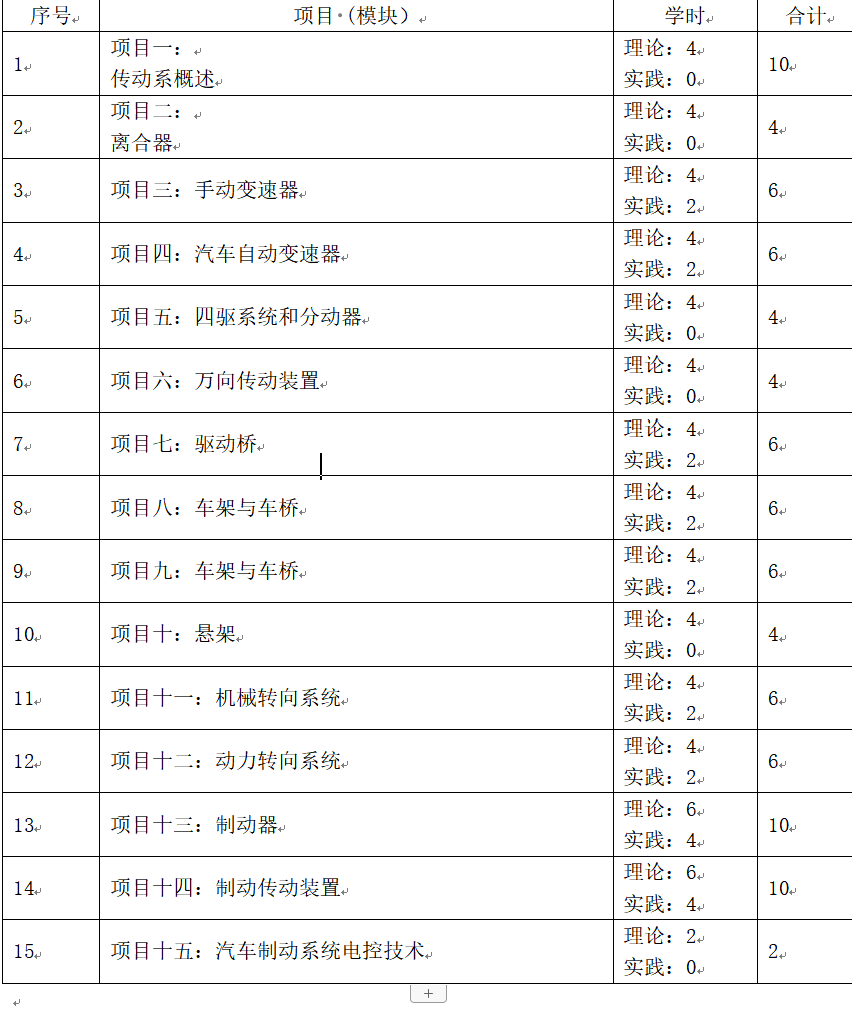 本课程主要任务是:通过本课程的学习,使员工具有汽车底盘诊断与修复基本技能。通过理论教学和实践技能训练,使员工系统掌握汽车底盘结构认识、工作原理分析、故障检测诊断等基本技能和知识,为后续课程学习奠定基础。