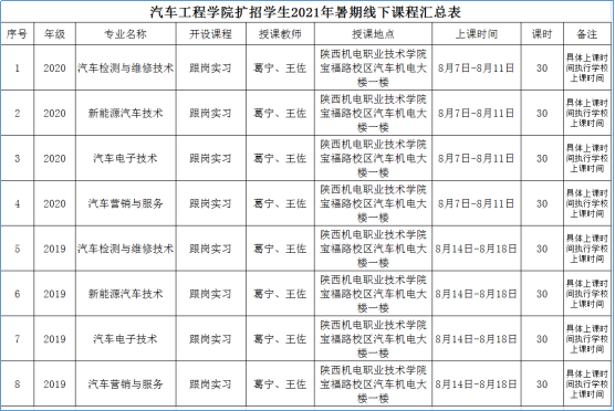 汽车工程公司安排的《k8凯发旗舰厅扩招员工2021年暑期线下课程汇总表》。