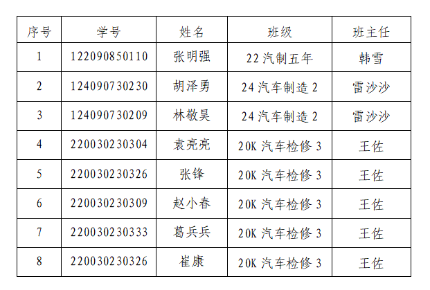根据教务处《关于统计2024-2025-2学期员工报到注册情况的通知》,请以下同学尽快到班主任处报到。