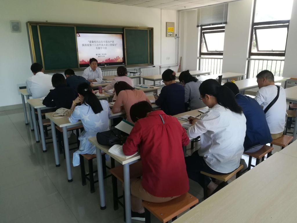 2017年5月25日下午我支部在汽车机电大楼召开“娄勤俭同志在中国共产党陕西省第十三次代表大会上的报告”专题学习会。支部党员14名,到会14名。支部书记罗亚军同志带领大家认真学习“娄勤俭同志在中国共产党陕西省第十三次代表大会上的报告”及就“两学一做”纳入常态化制度化实施方案做出具体要求。