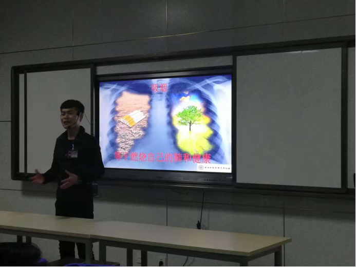 为响应公司禁烟号召,引导员工主动禁烟,切实监督管理好汽车机电大楼一至三楼的禁烟责任区,我系联合汽车协会举办了一次以“禁烟”为主题的宣传活动,于2018年11月14日晚7:30,在202汽车协会工作室进行了禁烟健康教育宣传活动。