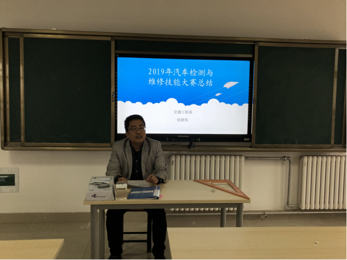 比赛结束后我系于2019年4月10日下午在汽车机电大楼309教室组织全系教师及培训员工对本次大赛作了总结。会上,首先指导教师张晓伟老师从领导重视、制定详细周密训练计划、利用假期时光全身心投入集训、存在问题、未来计划及措施等五个方面对此次大赛作出了全面详细的总结,感悟到了收获也发现了差距。
