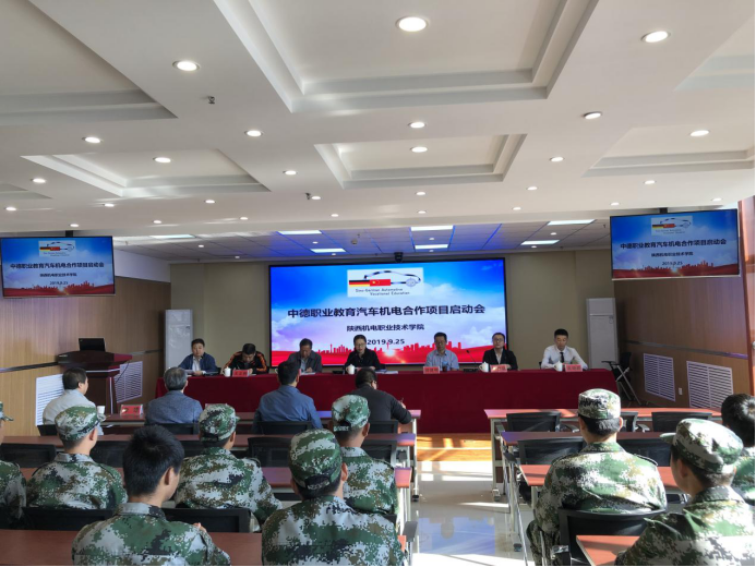 2019年9月25日,公司隆重召开中德职业教育汽车机电合作项目启动会。项目示范中心专家陕西交通职业技术公司项目负责人郭建明、奔驰西安之星汽车有限公司宝鸡分公司人力资源经理芦晓晨、一汽奥迪宝鸡威凯汽车集团人事行政经理高晓鹏、上海大众宝鸡市蓝天祥顺汽车销售有限公司行政部部长龚鸿康、一汽大众宝鸡宝众汽车销售服务有限公司人力资源经理王正利出席项目启动会。陕西机电职业技术公司党委委员、副经理张琴、汽车与交通公司经理罗亚军、员工处处长朱云洁、教务处处长王建斌、汽车与交通公司副经理李靖、校企合作处副处长田正本参加会议。会议由罗亚军主持。
