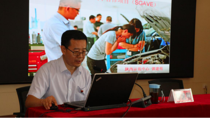 郭建明分别从项目背景、数据及目标、合作伙伴、组织结构、工作板块、荣誉与奖项、媒体形象等方面对中德汽车职业教育汽车机电合作项目进行了详细介绍,为后期项目的顺利开展提供了细致的指导。