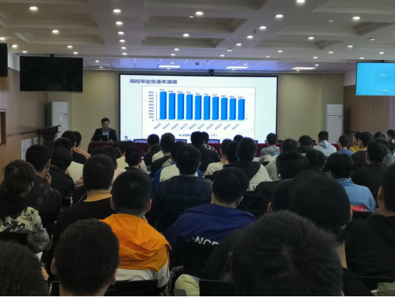 张超龙老师从严峻的就业形势、选择适合的工作、企业需要的个人素养、顺利完成顶岗实习四个方面对员工做了就业分析和顶岗实习指导。