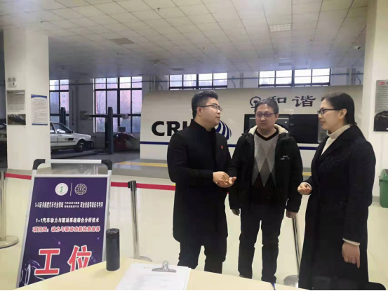 图2 公司副经理张琴与汽车工程公司经理李靖、督考陕西交通职业技术公司汽车公司副经理刘涛交流考评情况