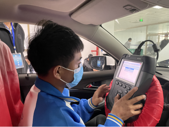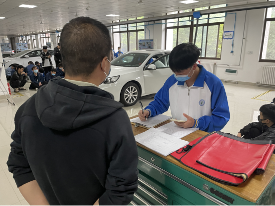 然后,由20新能源班白尕昂同学对汽车运用与维修职业技能等级证书(初级)汽车动力与驱动系统综合分析技术项目四:动力与驱动功能检查保养进行了展示。员工展示完,由葛宁老师对员工的操作进行打分,并现场解读操作要点以及员工的失分点。