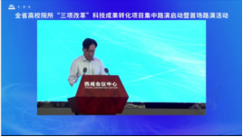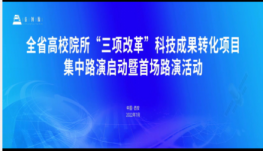 为深入贯彻落实全省科技成果转化“三项改革”推进大会精神,建立全链条高校科技成果转化服务体系,促进科技成果转化应用,更好支撑秦创原创新驱动平台建设,2022年7月13日下午在西咸会议中心启动了百家高校院所科技成果转化“三项改革”项目路演活动。会议采取“线上+线下”方式召开,设主会场和省外投融资分会场,有来自省政府及各部门主要负责领导及74所试点高校和4所试点院所相关负责人参加了会议,省长赵一德同志宣布了会议启动。