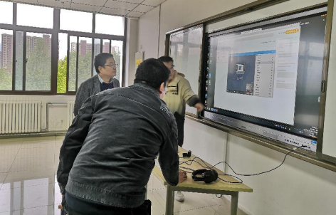 由于汽车工程公司实训室一体机安装时间较早,系统软件陈旧,不能满足线上线下同时教学的硬件软件要求,15日-16日张晓伟、张超龙、谭飞、李月阳四名教师对实训室一体机进行了系统升级并安装了QQ、腾讯会议等软件,通过对一体机加装摄像头满足了一体机线上直播的硬件要求。