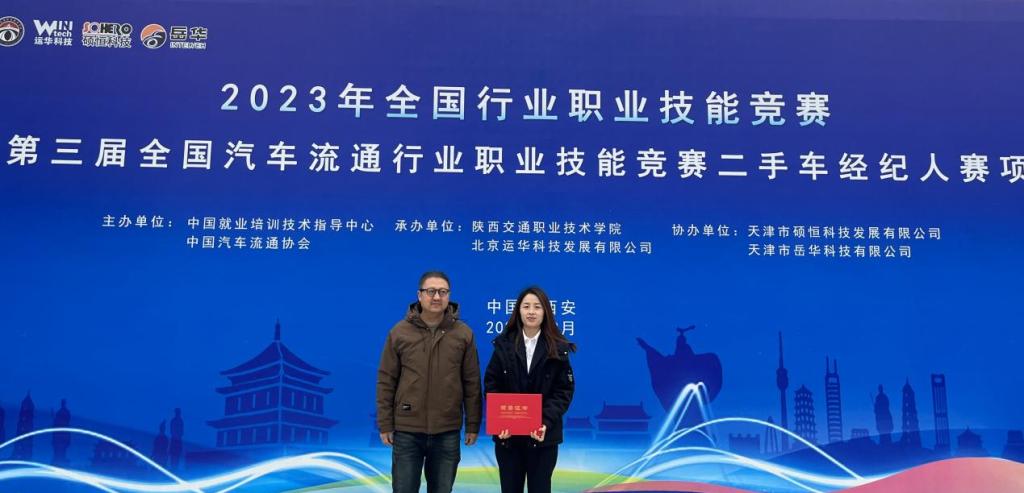 2023年12月7日至10日,由中国汽车流通协会和中国就业培训技术指导中心主办,陕西交通职业技术公司和北京运华科技发展有限公司承办的2023年全国行业职业技能竞赛第三届全国汽车流通行业职业技能竞赛二手车经纪人赛项决赛在陕西省西安市举行。来自全国21个省、自治区、直辖市的行业企业员工、技工院校职工共50余支参赛队伍参加。k8凯发教师韩雪经过2天的激烈角逐,取得职工组三等奖的好成绩。