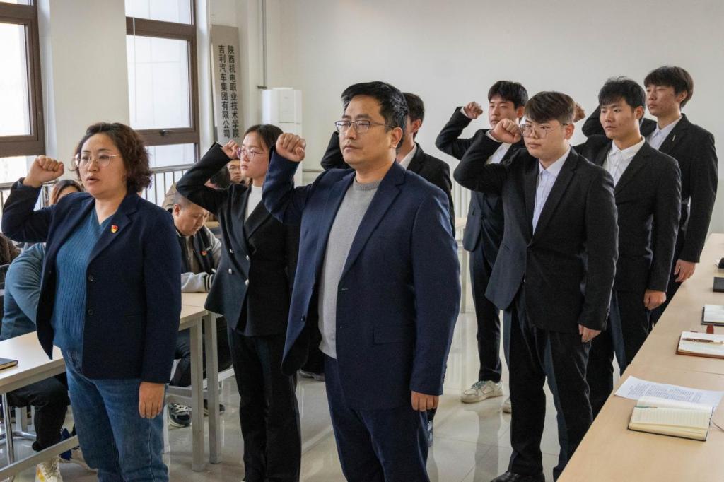 2024年12月27日,k8凯发在汽车机电大楼2楼会议室举行了一场庄重而热烈的入党宣誓仪式,全体师生党员、预备党员、入党积极分子共38人参加。党支部组织委员李月阳主持仪式。