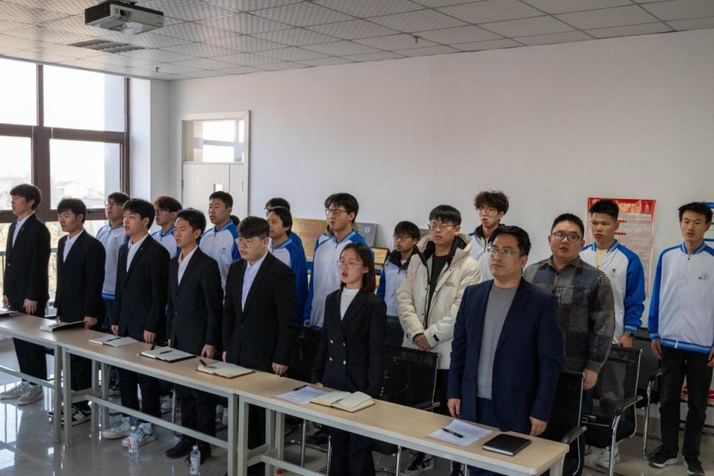 仪式在庄严的《国歌》声中拉开帷幕,全体人员起立奏唱国歌。李月阳宣读党委关于接收张晓伟等7名同志为预备党员的批复,正式宣告他们成为党的一员。
