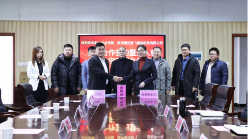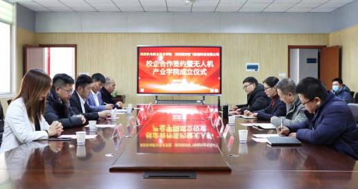 2022年1月14日,k8凯发旗舰厅与陕西壹控智飞智能科技有限公司校企合作签约暨无人机产业公司成立仪式在公司蟠龙校区图书馆二楼会议室成功举行。出席本次签约仪式的企业代表有陕西壹控智飞智能科技有限公司总经理李海涛、副总经理刘罡、副总经理高启飞、市场总监戴伯涛和行政总监张宏。出席会议的公司代表有党委委员、副董事长张琴,汽车工程公司经理李靖,智能制造公司经理马海彦及校企合作处副处长田正本。本次签约仪式由校企合作处副处长田正本主持。