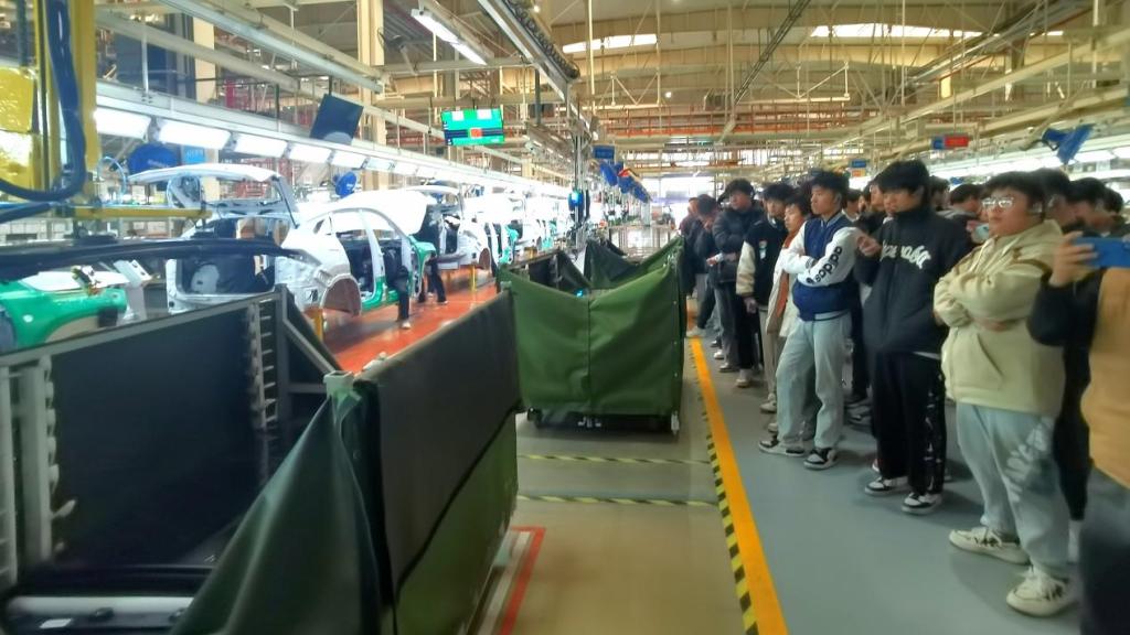 本次研学以“直面整车生产现场、体悟现代化生产工艺”为主题,目的是将理论知识带出教室、把生产现场融入教学。对现代化车身焊装工艺、智能化生产线的现场管理方式、AGV小车成套配送先进输送方式、白车身及整车AUDIT质量评审机制等多个涉及整车生产工艺、现场管理、质量管控等方面知识的了解和初探。