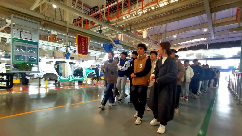 11月23日,22汽车制造、汽车电子及20汽检五年员工共计80余人赴吉利汽车宝鸡制造基地研学。