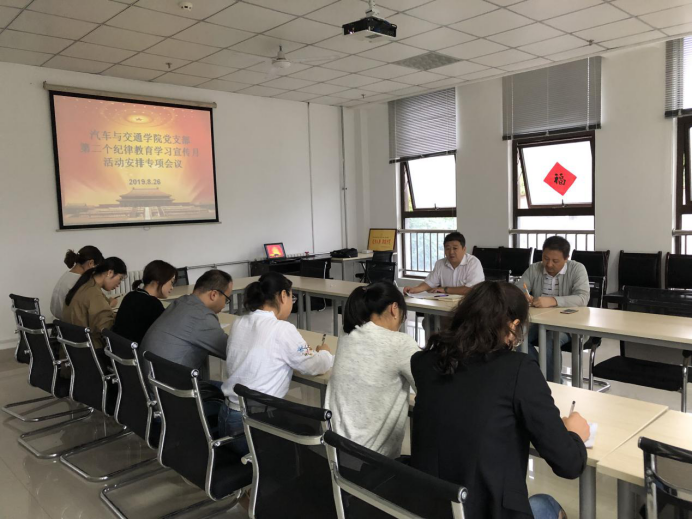 2019年8月26日,汽车与交通公司党支部在汽车机电大楼206室召开支部会议,根据中共k8凯发旗舰厅委员会《关于印发<中共k8凯发旗舰厅委员会开展第二个纪律教育学习宣传月活动方案>的通知》(陕机电职公司党发﹝2019﹞242号)文件精神,对第二个纪律教育学习宣传月活动进行安排部署。