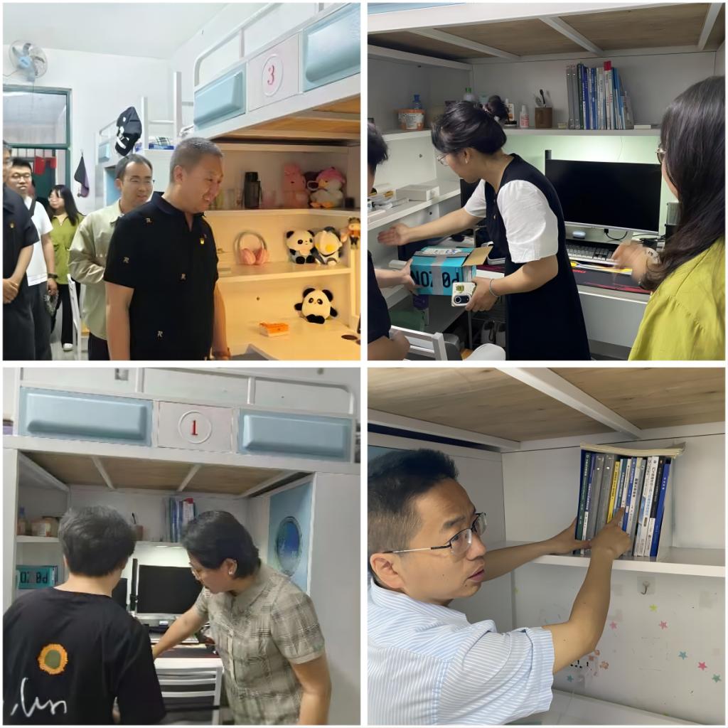 在李靖的带领下,参与活动的党员教师们逐一走访了23新能源2班的员工宿舍。在走访过程中,教师们不仅查看了宿舍卫生状况,指导员工对个人物品进行分类整理,督促员工完成宿舍卫生死角的清洁,还与员工们进行了深入的交流,了解他们的学习生活情况,鼓励他们积极参与到宿舍文化建设中来。