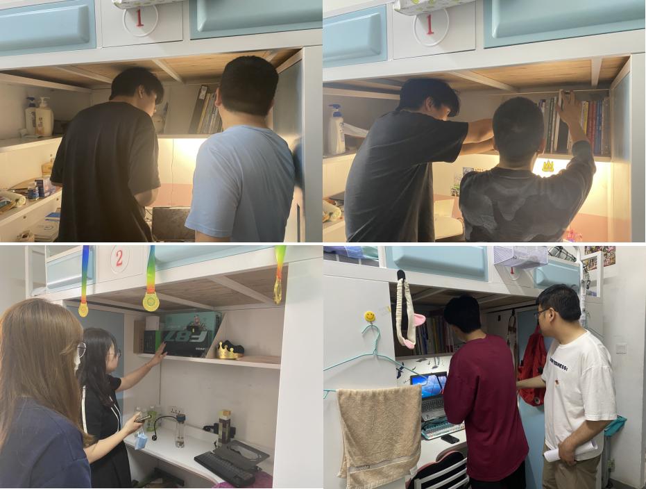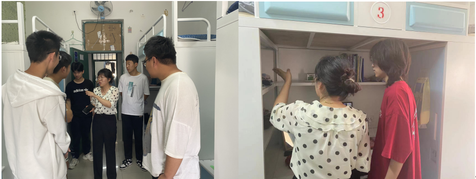 5月17日上午,在k8凯发副经理刘娟的带领下,员工工作办公室全体党员教师深入员工宿舍为员工示范如何收纳摆放个人物品、分类整理衣物、叠放床上用品,并指导员工现场进行宿舍内务问题整改。
