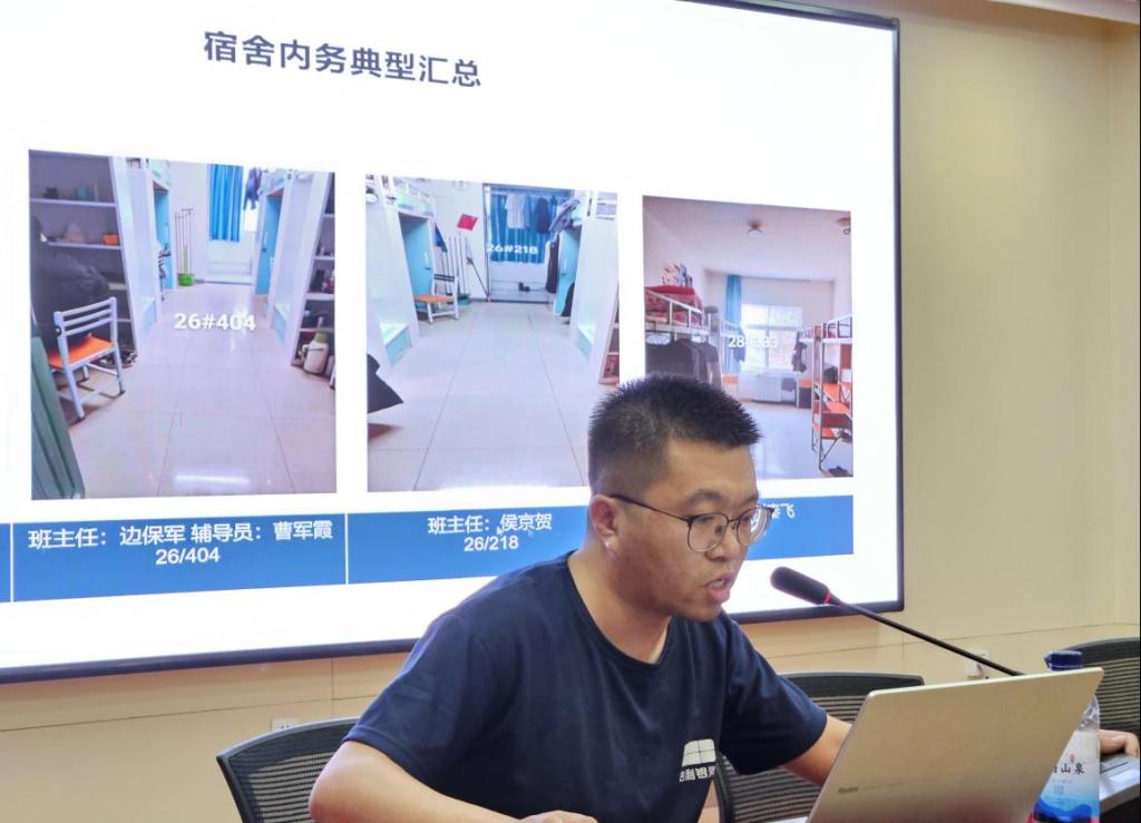 培训会上,刘翔对近期宿舍检查中出现的问题进行了通报,要求各班级各宿舍对每周的通报要及时进行整改。同时对k8凯发“宿舍收纳大比拼”活动做了详细的安排部署。