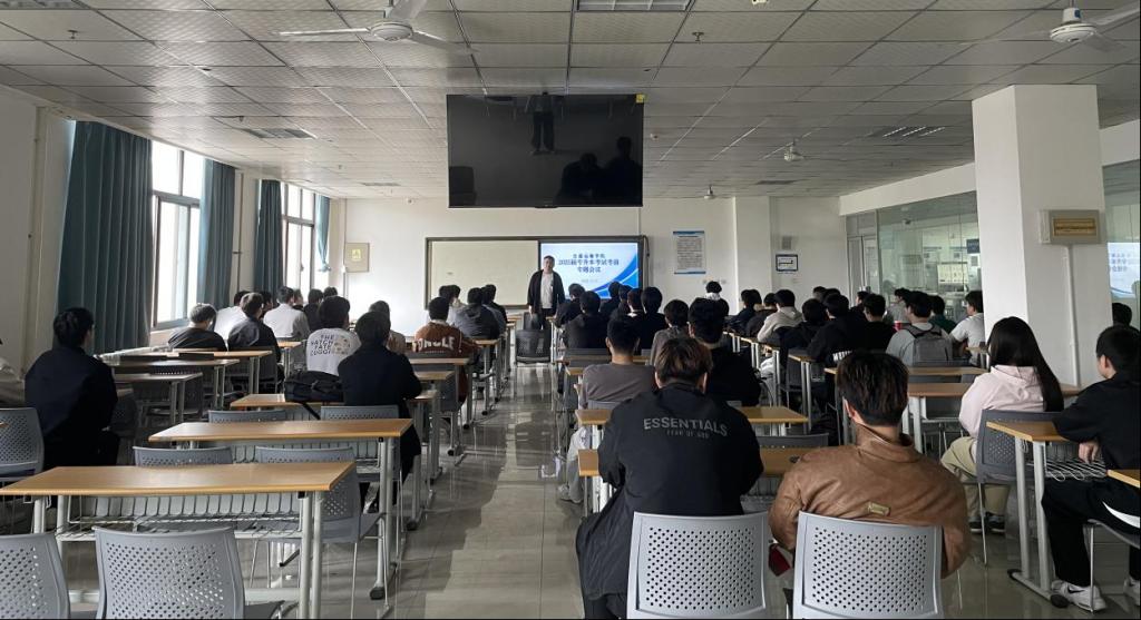 为确保 2025 届毕业生专升本考试顺利进行,4月11日上午,公司组织开展了专升本考试前考风考纪主题班会。此次班会覆盖公司全体 2025 届专升本备考员工,旨在增强员工的诚信考试意识,引导员工自觉遵守考试规则。班会由辅导员李月阳主持。