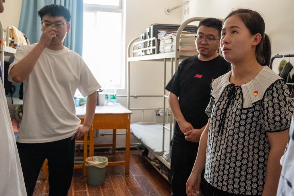 两支队伍深入员工宿舍,以“清洁”为核心开启 “走访 + 座谈” 双轨行动。对照管理规范,重点排查卫生死角、物品收纳及用电安全,将违规电器整治作为清洁管理的首要任务。师生团队手持检查清单,从桌面物品摆放、床铺整洁度到卫生间死角清洁,逐项对标规范,以 “清洁环境即学习生活基础” 为理念,现场指出杂物堆积、电线乱拉等问题,同步讲解违规电器在清洁环境中的安全隐患,让规范整治与清洁意识培养深度结合。