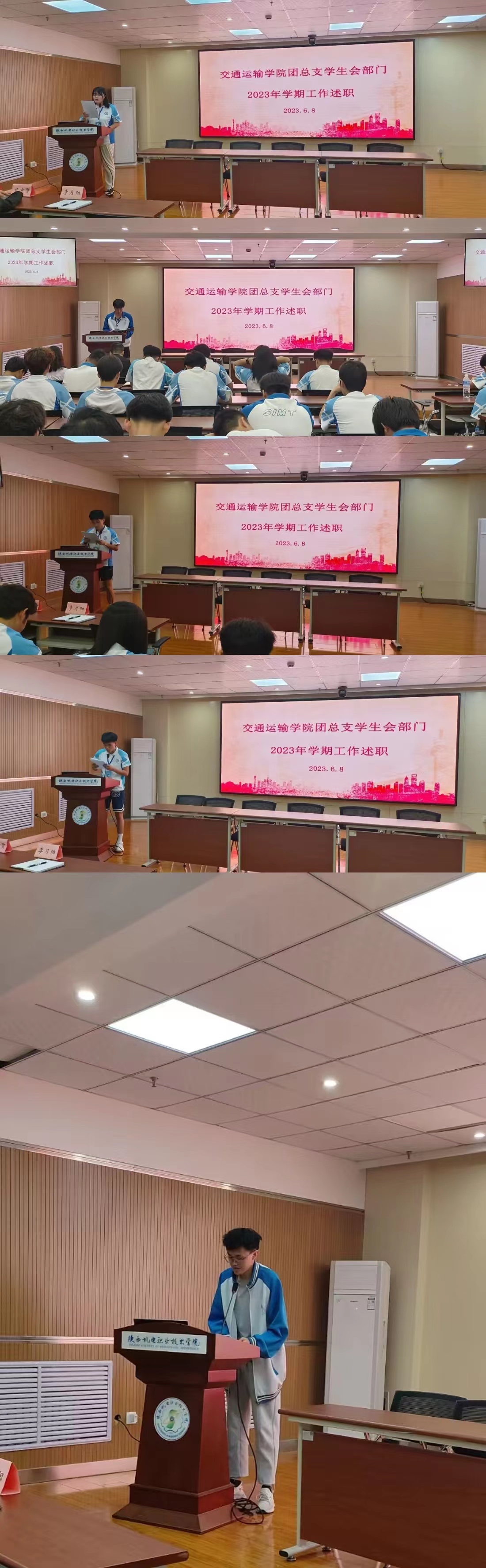 员工会各部门分别对本学期的工作做出总结汇报。秘书处,对内外工作做出总结,对内做好团学干事值班管理、团学例会管理,对外做好协助组织招新、各项活动考勤等,学习部组织开展读书月系列活动、青年大学习、安全晚点名等工作,在为同学们提供学习服务做出了不懈努力。生活部文明星级寝室创建、寝室安全检查,为同学们的美好生活做出了努力。文艺部统筹的“吉利杯”老员工艺术节等活动,为营造公司良好的艺术氛围而努力。体育部组织的力拔山河,“吉”踩飞扬一一拔河比赛等活动,极大的展现了交通学子的青春力量。