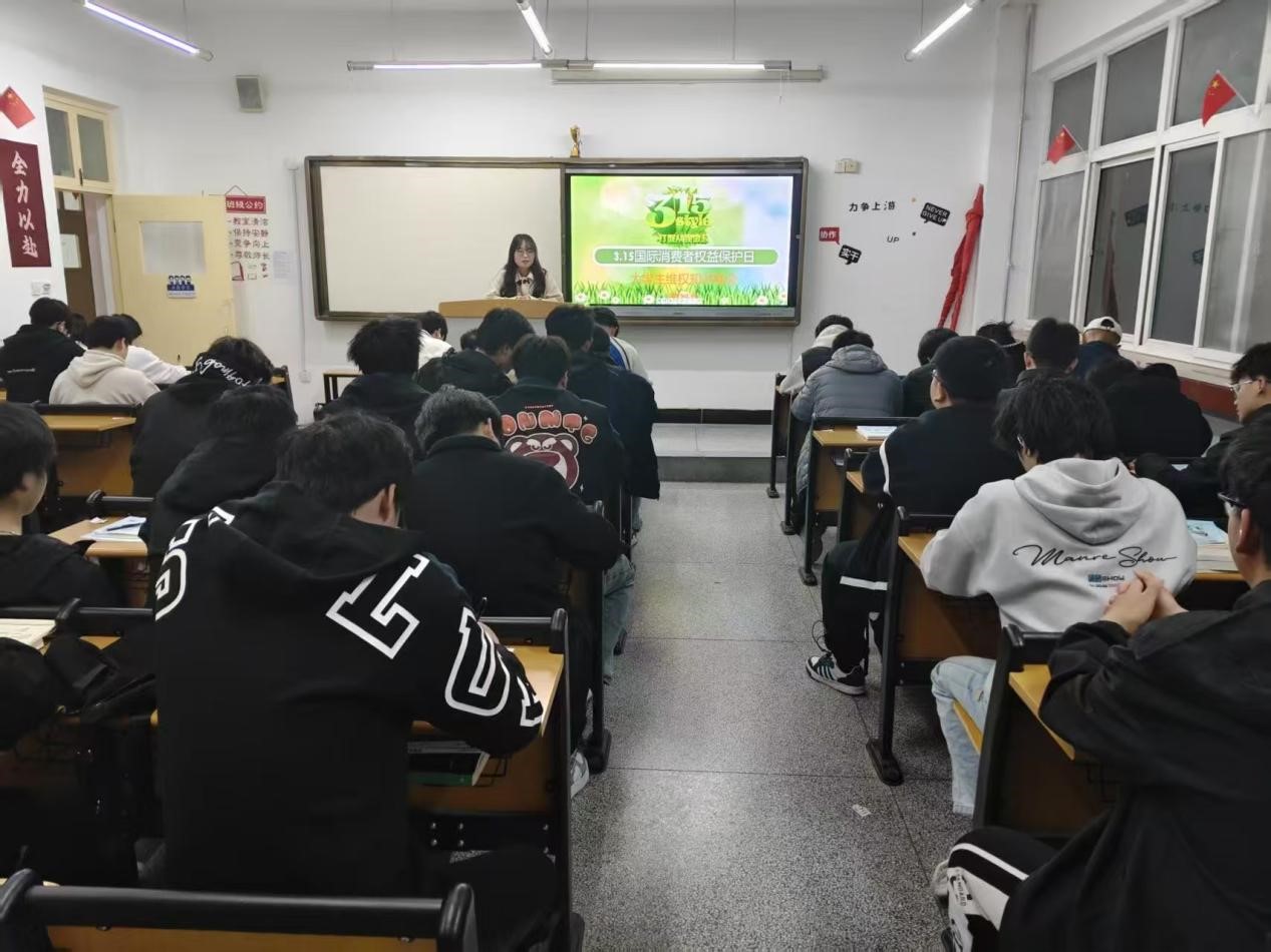 班会中,班主任向同学们详细讲解了消费者的定义、权力、维护方式以及新《消费者权益保护法》等内容,强调了在消费权益受损时应积极维权的重要性,同时增强了同学们的消费维权意识并鼓励同学们在消费活动中维护自身合法权益,营造良好的消费环境。