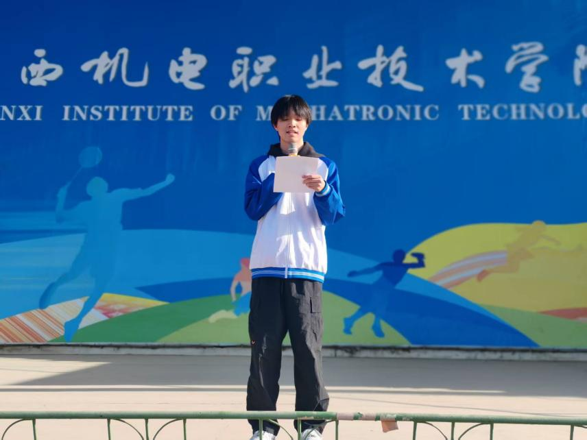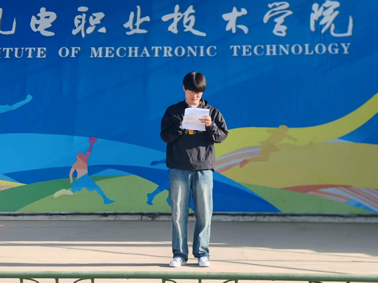 随后,24汽车制造2班杨佳俊同学以《书香校园》为主题作国旗下演讲。