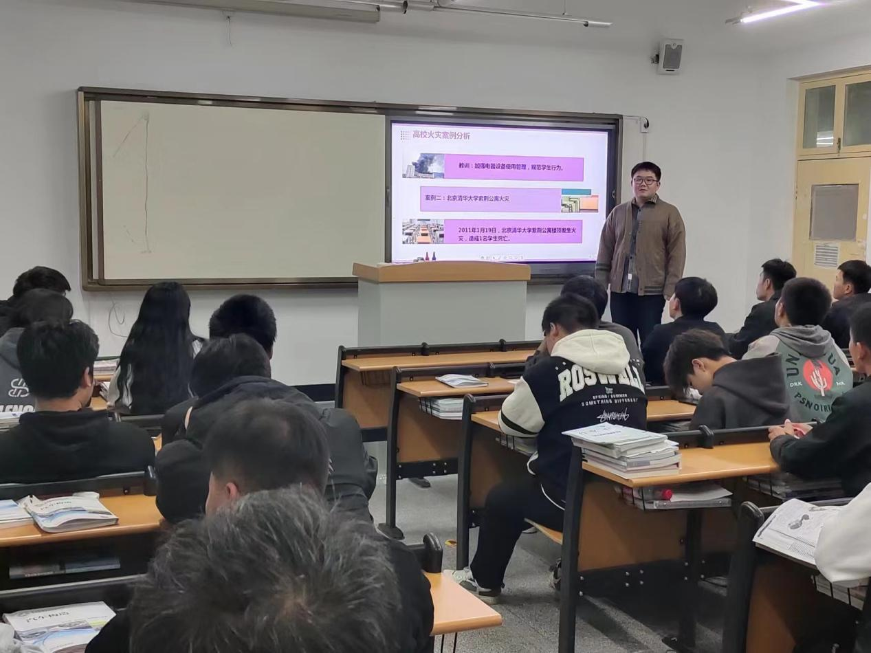 班会期间,各班级辅导员通过PPT、视频等形式,向同学们介绍了消防安全的基本知识,包括火灾的预防、火场自救及逃生技巧等。同学们在班会上认真学习了消防安全的重要性,了解了火灾成因、火灾种类、灭火器的使用方法等。
