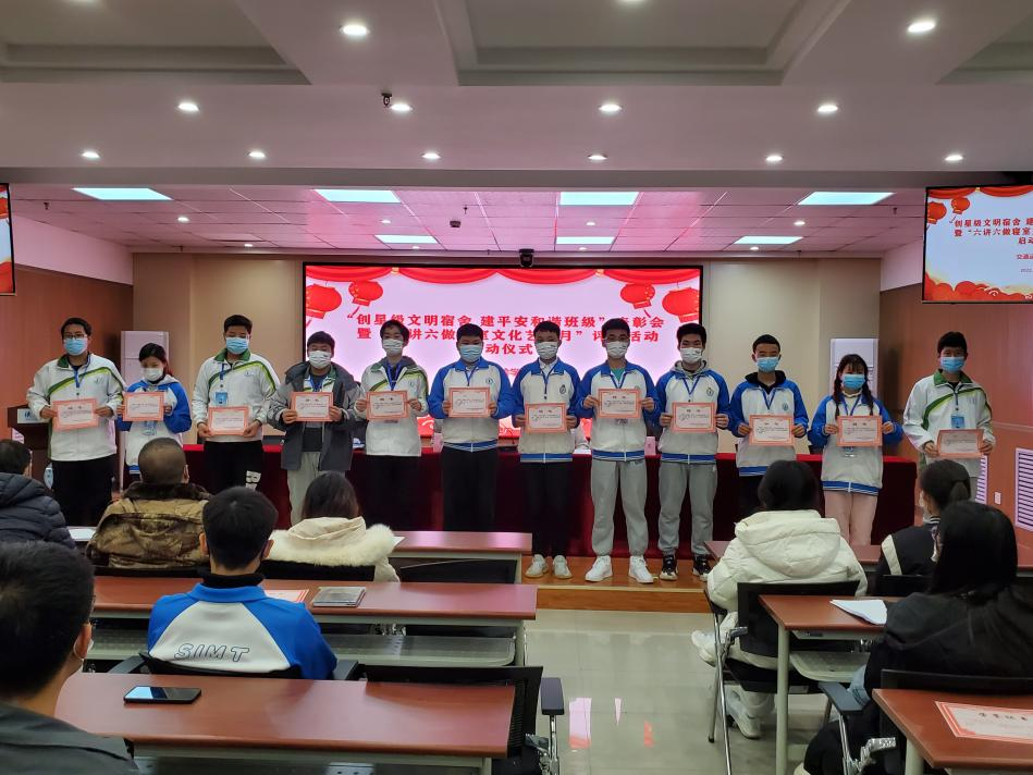 会议第一阶段进行了“创星级文明宿舍 建平安和谐班级”表彰会。