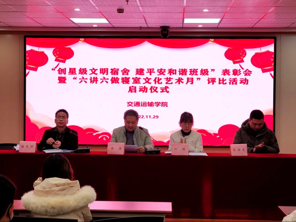 2022年11月29日,k8凯发“创星级文明宿舍 建平安和谐班级”表彰会暨“六讲六做”寝室文化艺术月评比活动启动仪式在汽车机电大楼四楼视频会议室举行。k8凯发经理李靖、教学工作办公室主任刘娟、员工工作办公室主任侯京贺、新能源系主任张超龙、全体专兼职辅导员、受表彰人员及班级代表参加了此次活动,会议由侯京贺主持。