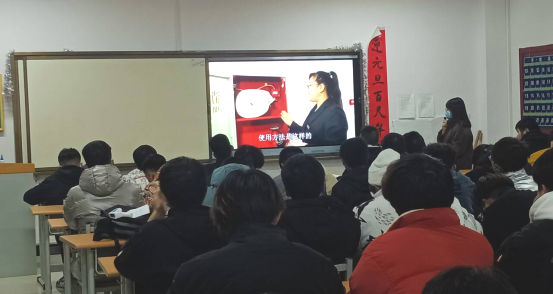 随后,辅导员从认识消防器材、如何预防火灾、火灾如何逃生以及灭火妙招介绍四方面讲解了消防安全相关知识。其中,重点强调了如何预防火灾,主要包括:(1)禁止在校园里吸烟;(2)禁止在宿舍点燃蜡烛;(3)禁止在宿舍使用违规用电器;(4)禁止在校园里点燃明火。