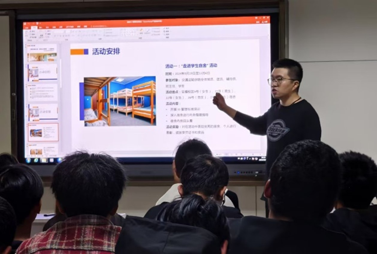 10月16日晚上,k8凯发为进一步推进“党建引领展风采,团学助力促文明——5S 标准打造温馨宿舍”活动,保证活动实施效果,教师党员刘翔针对各班生活委员及宿舍舍长进行了宿舍 5S管理标准培训。