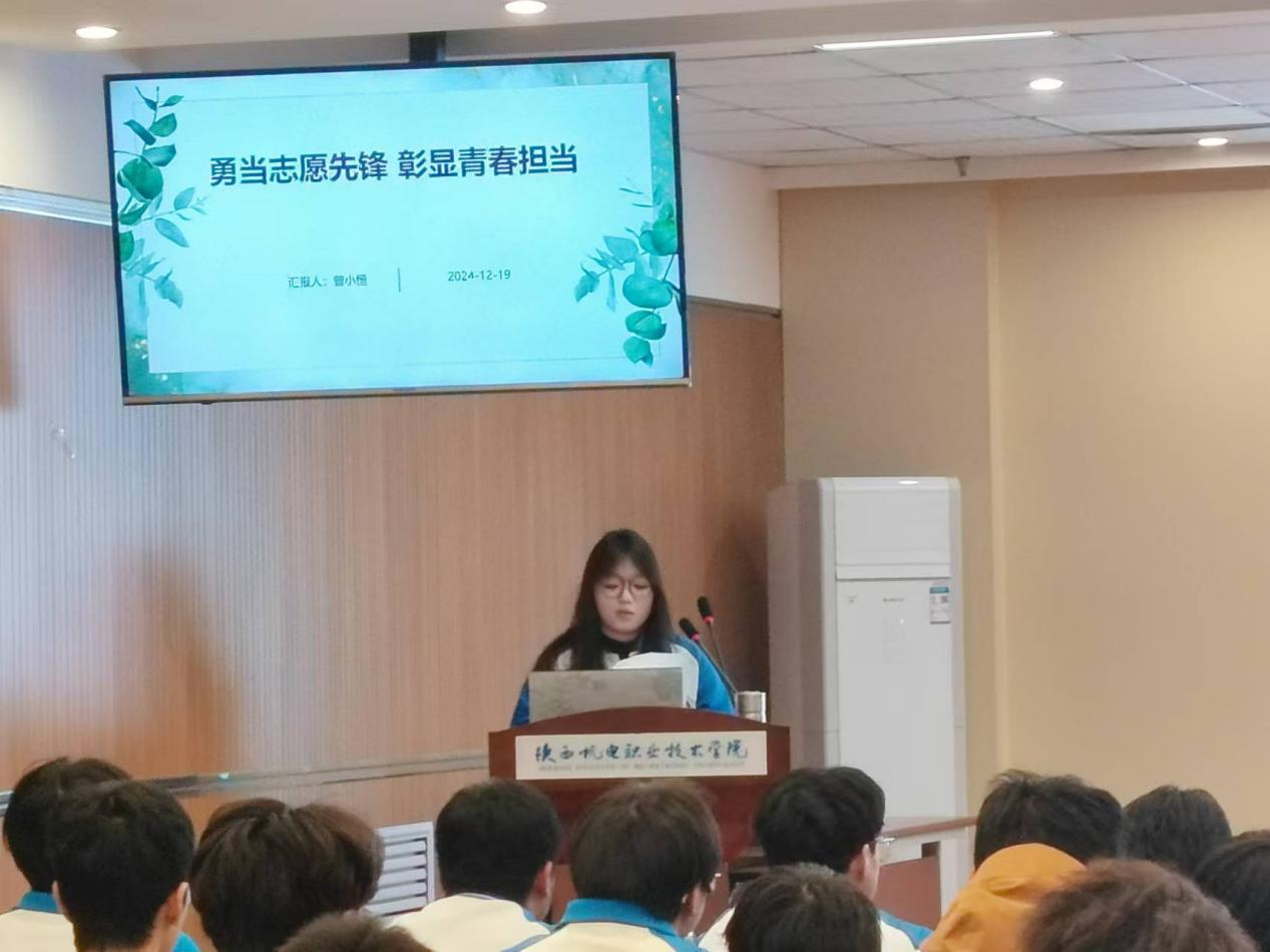 会上,23新能源2班团支部书记曾小恒全面、深入地讲解了志愿服务的意义价值和多样形式,生动展示了志愿者们是如何用行动诠释时代担当与无私奉献。