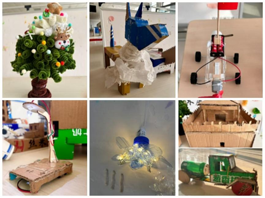 本次再生艺术展特别展示了员工们在手工创意实践中的作品,大家精心准备,用废旧纸壳创造出一件件“再生艺术品”,如声控灯、小动物、圣诞树、电动小汽车等再生艺术品,这些作品将汽车专业的知识与环保再生及劳动的理念紧密融合。