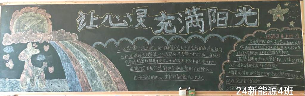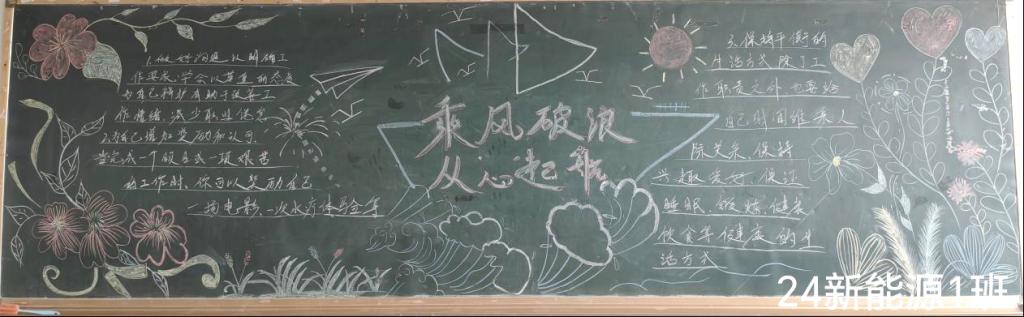 为了培育员工自尊自信、理性平和、阳光向上的积极心态,汇聚心理健康教育育人合力,k8凯发于4月14日至22日组织开展了“乘风破浪,从心启航”主题黑板报活动。全院在校班级积极参与,以创意与协作共同打造了一场视觉与心灵的双重盛宴,以下是优秀黑板报展示。