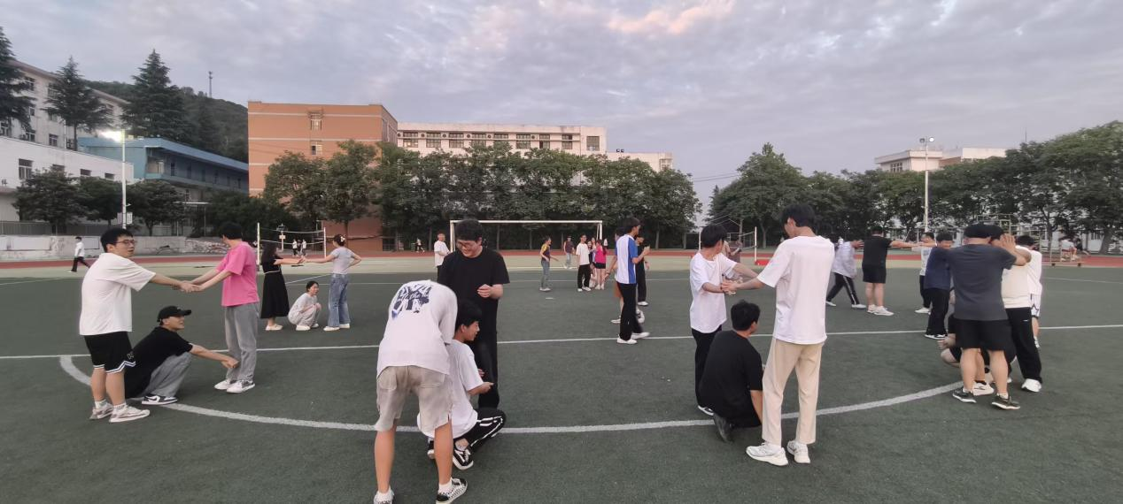 活动伊始,破冰环节迅速拉近了同学们之间的距离。“丢手绢”游戏唤起了大家的童年回忆,欢笑声在操场回荡。“松鼠与大树”游戏更是体现了大家的默契配合,同学们在“松鼠”“大树”“地震”的指令下迅速反应,快速组队、重组,洋溢着青春的活力。随后的团队协作游戏环节将整个活动氛围推向顶峰,在“折返跑接力”中,组员们在100米赛道上全力冲刺,场边的加油声此起彼伏,每一个奔跑的身影都成为了操场上最亮丽的风景线。