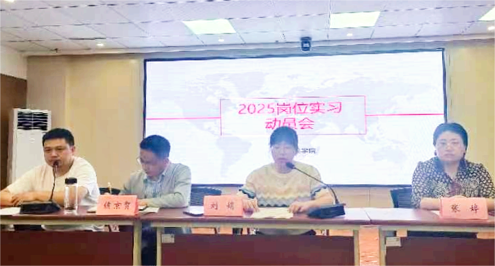 会上,刘娟作动员讲话。强调实习对职业成长的重要性。通过实习,员工将学习技能、了解企业文化,并提升社交、沟通和合作能力。面对严峻的就业形势,呼吁员工要正确认识就业形势,深刻理解实习的意义;迅速完成角色转变,从容应对岗位实习挑战。同时要求员工一要明确目标,把握机会充分做好在就业单位实习准备;二要不怕吃苦,迎难而上,虚心请教实习单位技术人员,不要好高骛远,不要不切实际,学真本事;三要摆正心态,降低姿态,苦练修行。