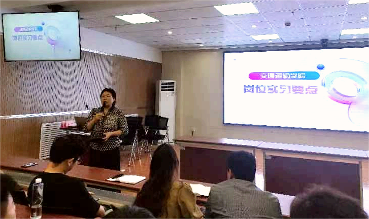 张婷就实习流程和工学云使用进行了专题培训。通过培训详细介绍了本次岗位实习的具体安排,以确保员工明确实习目标和要求,强调岗位实习的重要性,并就公司实习形式、要求及成绩评定等内容进行了说明。